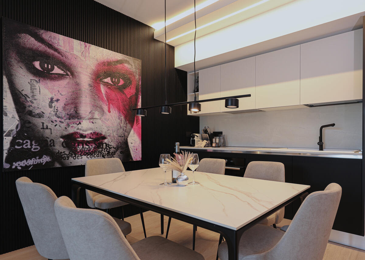 Every detail is designed for a worry-free stay: washer, dryer, split air conditioning, 75" smart TVs, a beamer in the master bedroom, high-speed Wi-Fi, hair dryers, iron, and premium cookware. Rental12 manages cleaning, laundry, and maintenance in-house, ensuring spotless quality and five-star reliability.